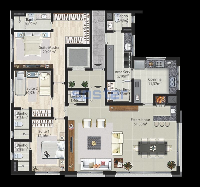 3 suítes