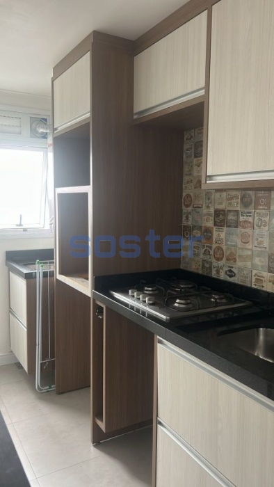 EXCELENTE Apartamento aconchegante, bem iluminado e ventilado, com 2 dormitórios, sendo 1 suíte, banheiro social, living amplo integrando sala de jantar, sala de estar, cozinha americana e área de serviço. Os banheiros são muito bonitos, com revestimento moderno nas paredes.
