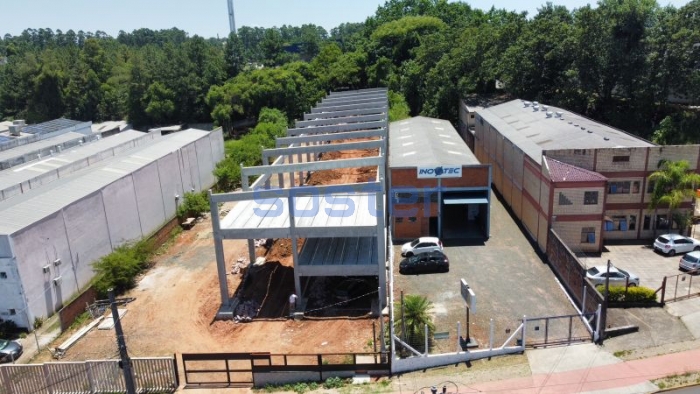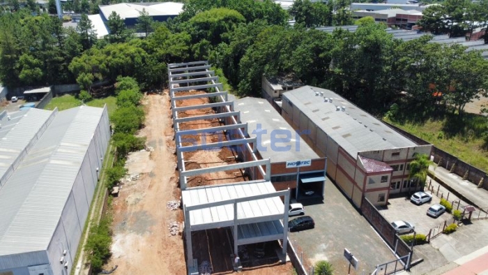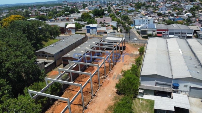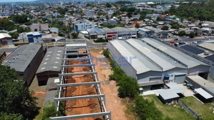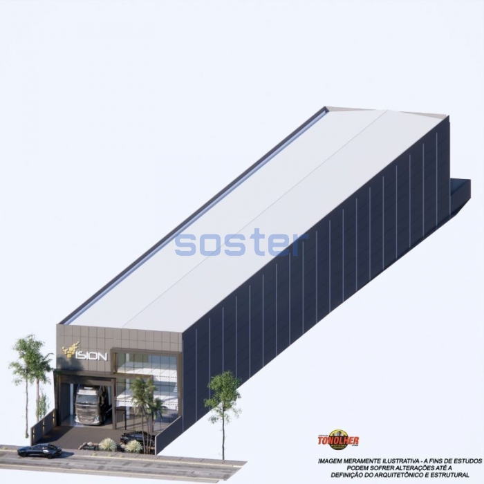 Pavilhão novo, em construção. São 900m² de área construída no terreno de 1740m². Estrutura para ponte rolante de 10 toneladas, telhas de aluzinco 0,50.